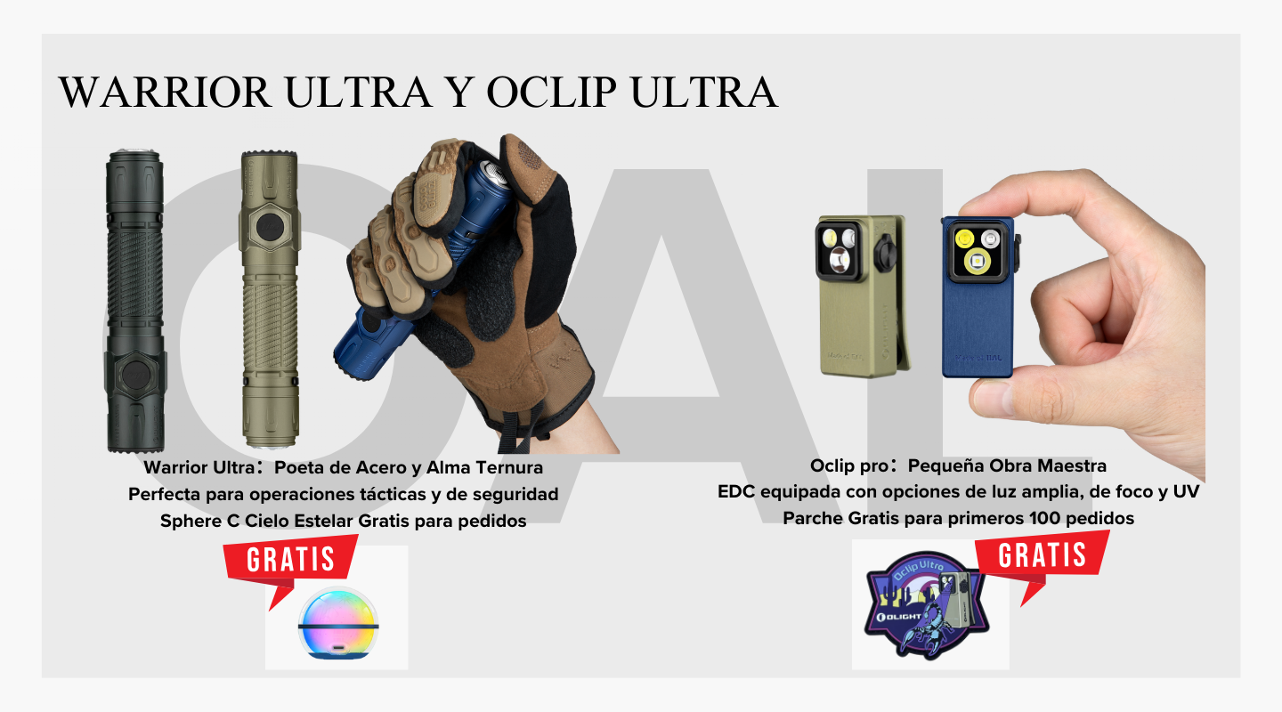Te presentamos dos novedades de OAL: la Warrior Ultra y la Oclip Ultra. Compra la Warrior Ultra y llévate una Sphere C Cielo Estelar de regalo,y las primeras 100 pedidos de Oclip Ultra recibirán un Parche. ¡Solo hay 100 unidades disponibles, así que actúa rápido!