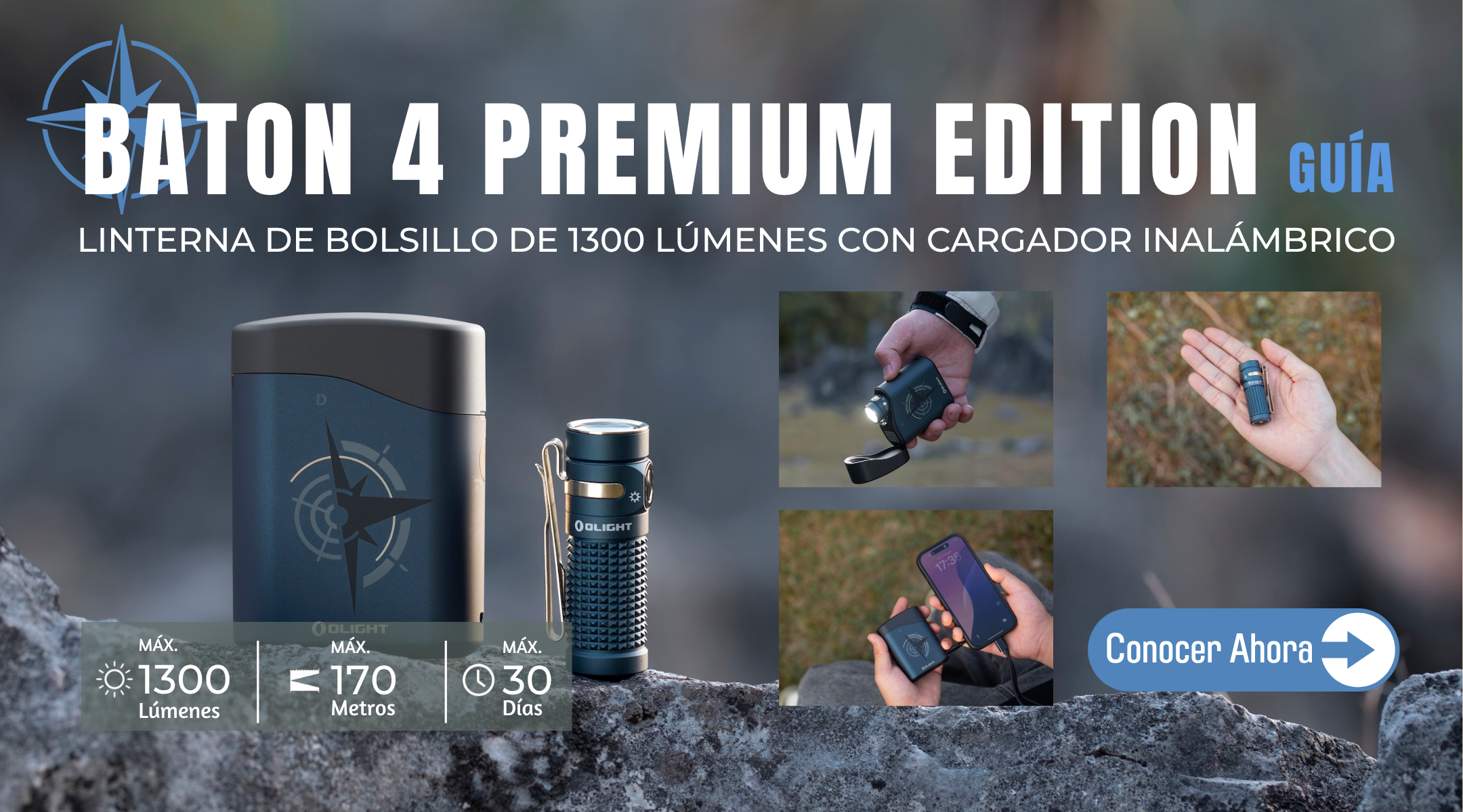La Baton 4 Premium ofrece 1300 lúmenes y un alcance de 170 metros. Es compacta y potente, perfecta para el uso diario. Incluye un estuche de carga inalámbrica de 5000 mAh que puede cargar la Baton 4 por completo hasta cinco veces. Los usuarios pueden controlar la linterna por completo simplemente presionando el botón del estuche de carga sin sacarla. La interfaz universal USB-C facilita la carga del cargadoro la usa como batería externa para cargar el teléfono, ante accedentes como corte de luz.