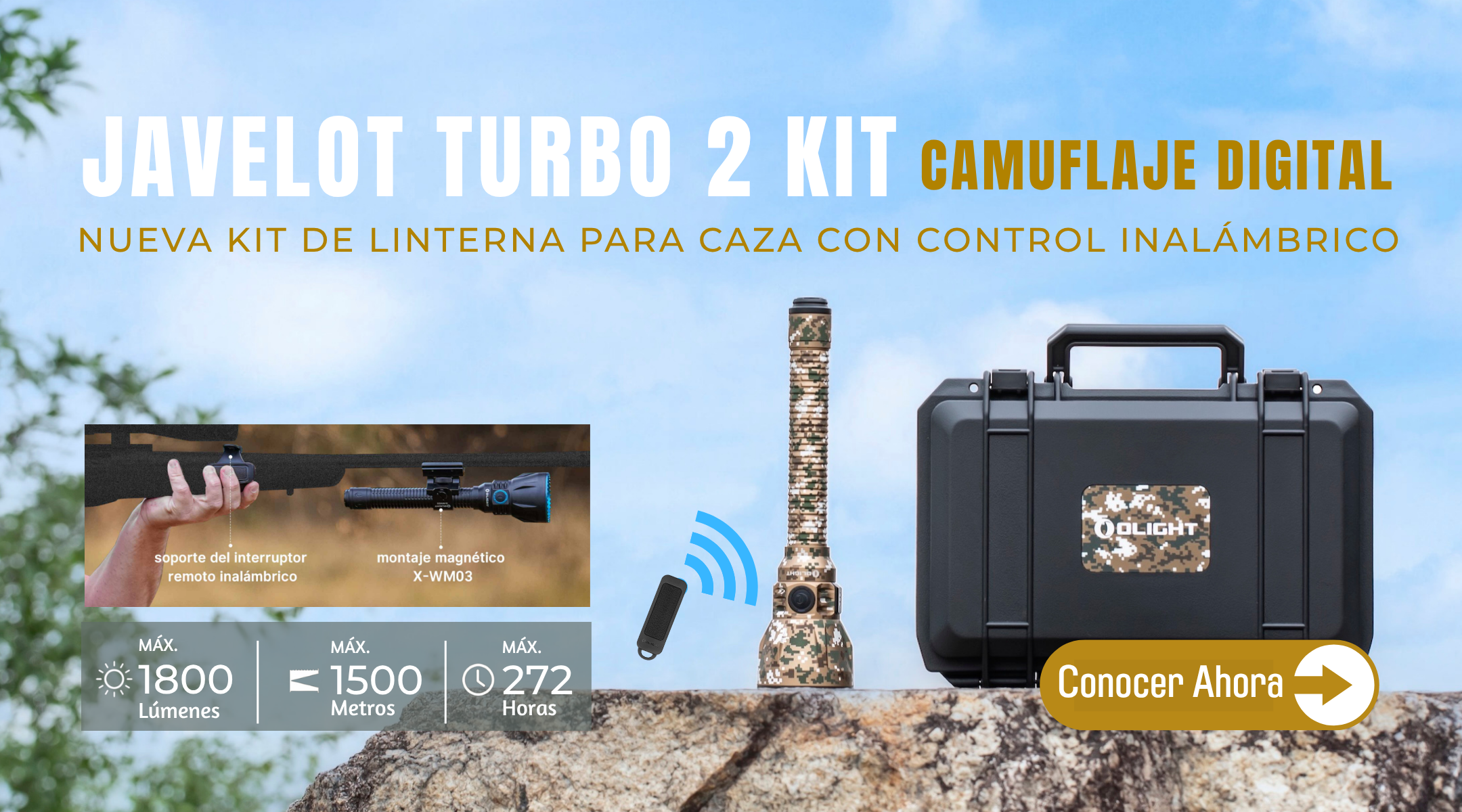 La Javelot Turbo 2 ofrece 1800 lúmenes y alcance hasta los 1500 metros y su haz concentrado permite identificar fácilmente los detalles, ofreciendo una precisión inigualable. Compatible con interruptores remotos inalámbricos y monturas magnéticas X-WMO3, se monta fácilmente en rifles y escopetas, ofreciendo la máxima fiabilidad para actividades al aire libre como la caza.