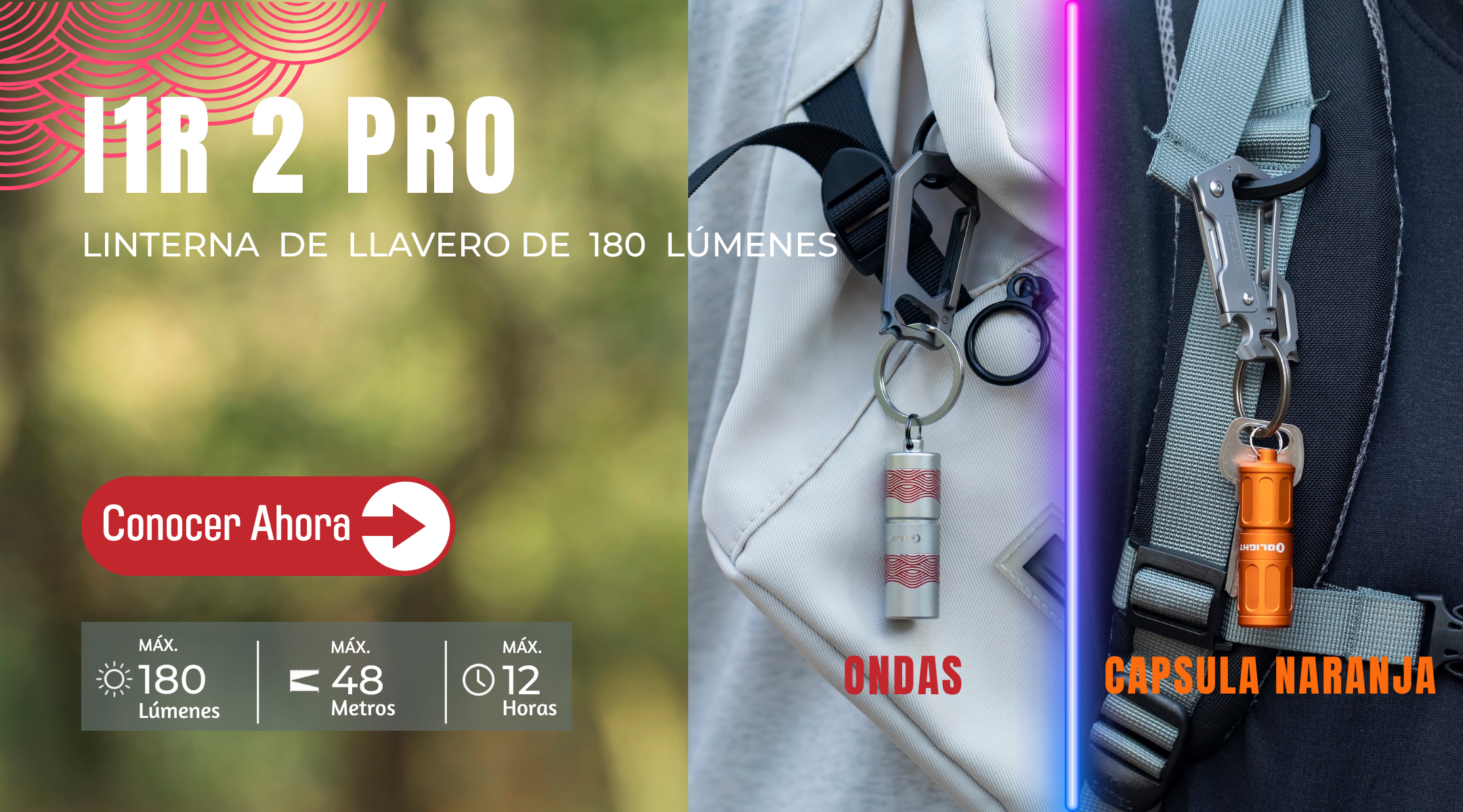 i1R 2 Pro Ondas/ Capsula Naranja: mini linterna de llavero con 2 modos de iluminación. 🔗Haz clic aquí