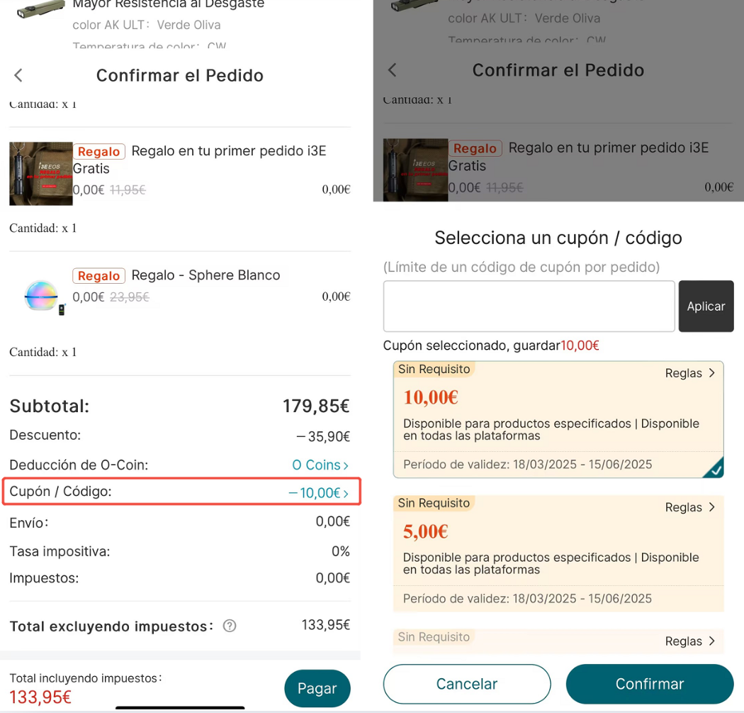 Los productos de venta por tiempo limitado solo se pueden comprar durante el período de venta, así que puedes agregar productos a tu carrito de compras antes del dicha período, pero no puedes pagar, de lo contrario, no vas a aprovechar el descuento.
