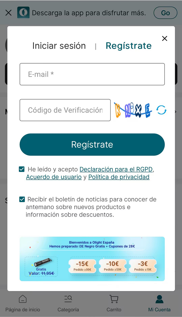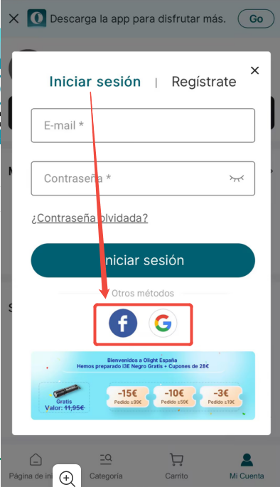 Cómo Registrarse/Iniciar Sesión en Olight España