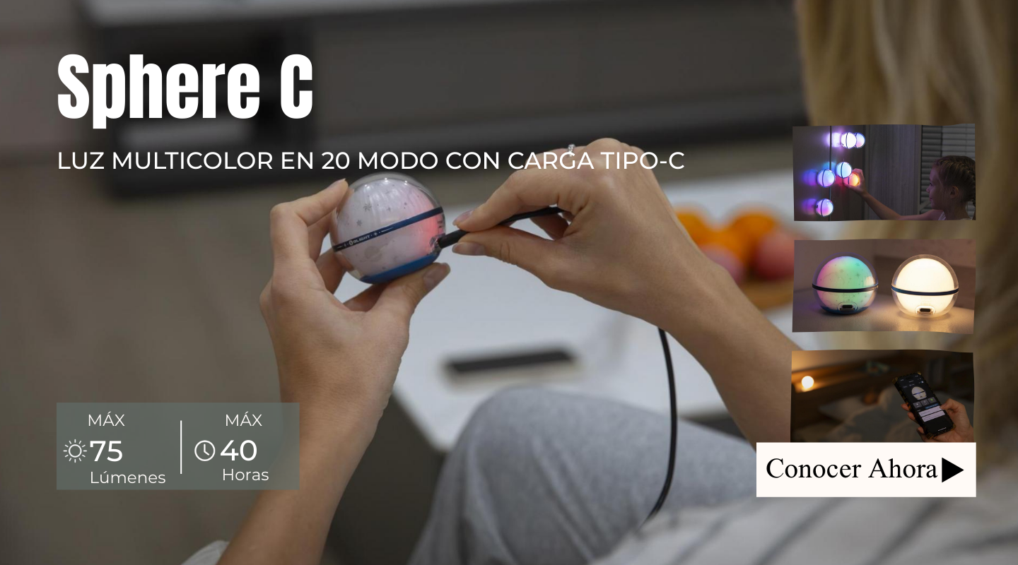 Con carga universal USB-C, no necesitas cables adicionales, puedes alimentar el Sphere C con los cables USB-C que ya tienes en casa.
