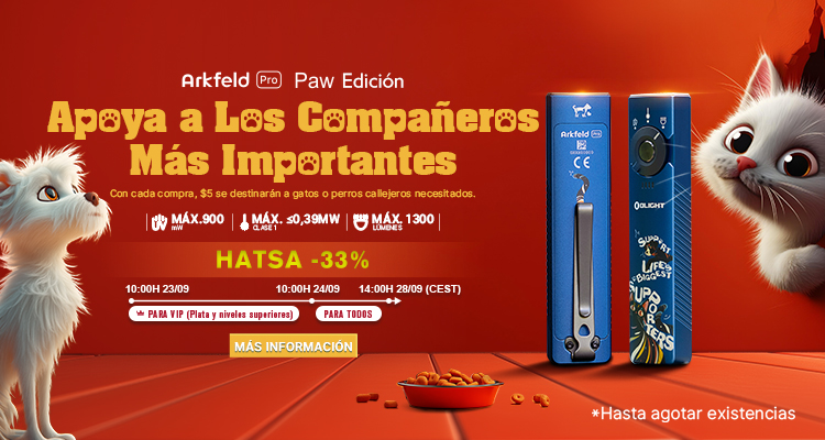 Para quienes aman a sus amigos peludos tanto como a sus linternas, Olight tiene una oferta realmente especial: la Arkfeld Pro (Paw Edición) CW. Con 1300 lúmenes, ilumina los paseos nocturnos con tu perro para mantenerlo seguro. Utiliza la luz UV para detectar bacterias en su cuerpo y ayudar a mantenerlo sano. Además, diviértete con tu cachorro usando el láser verde para hacerlo feliz.