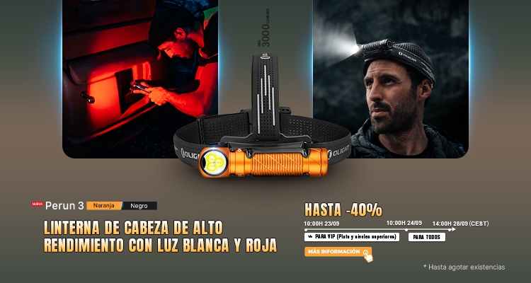 Perun 3: Linterna de cabeza de 3000 lúmenes con luz blanca y roja