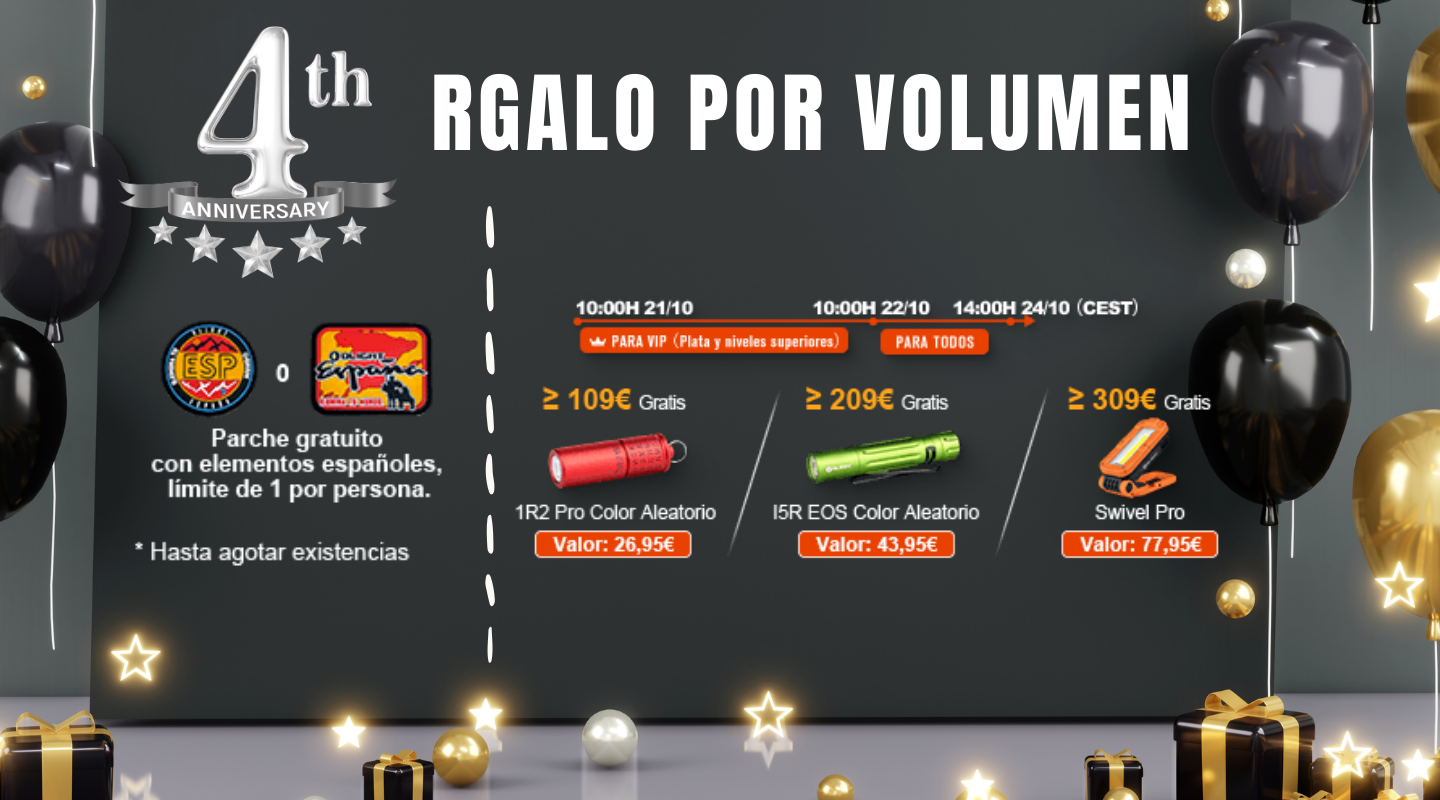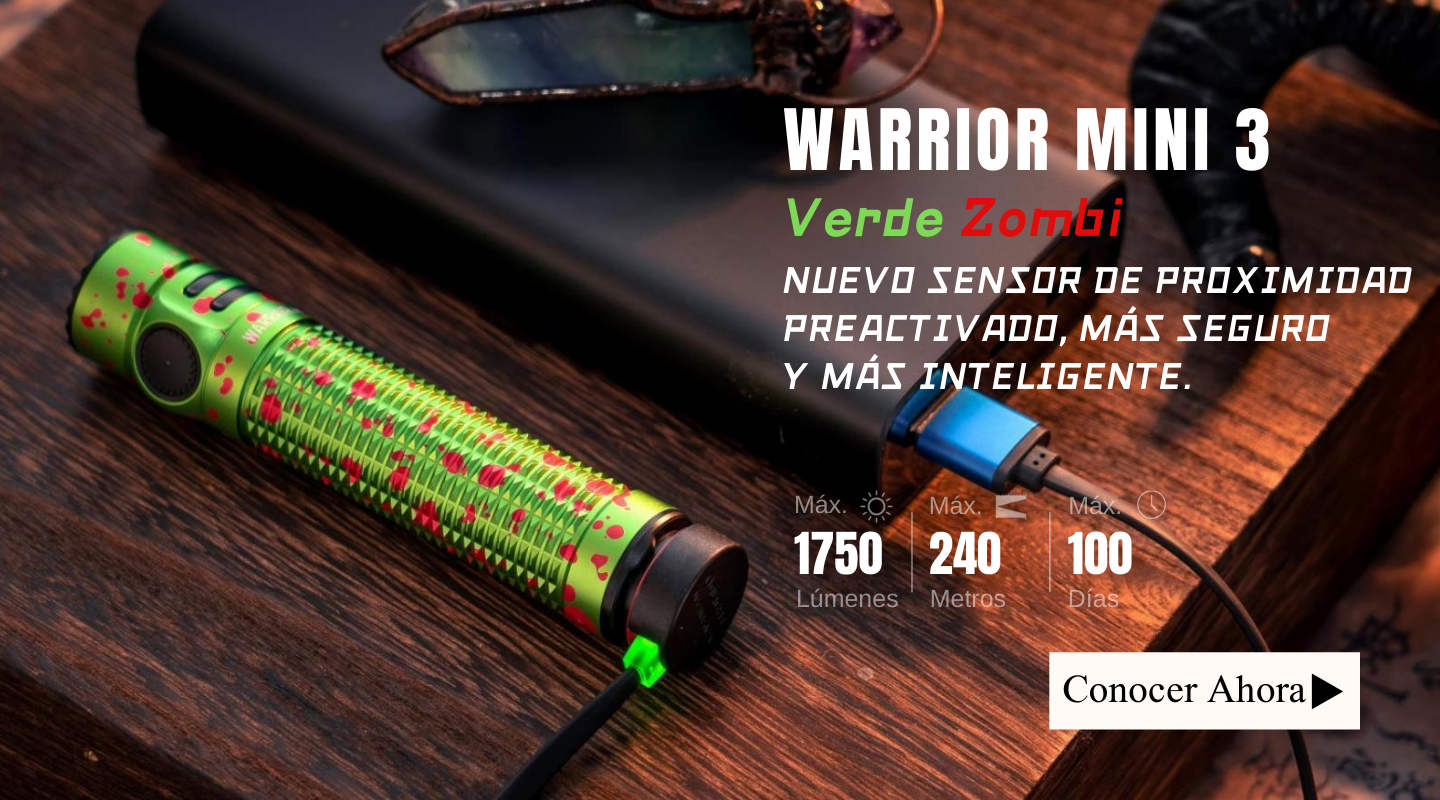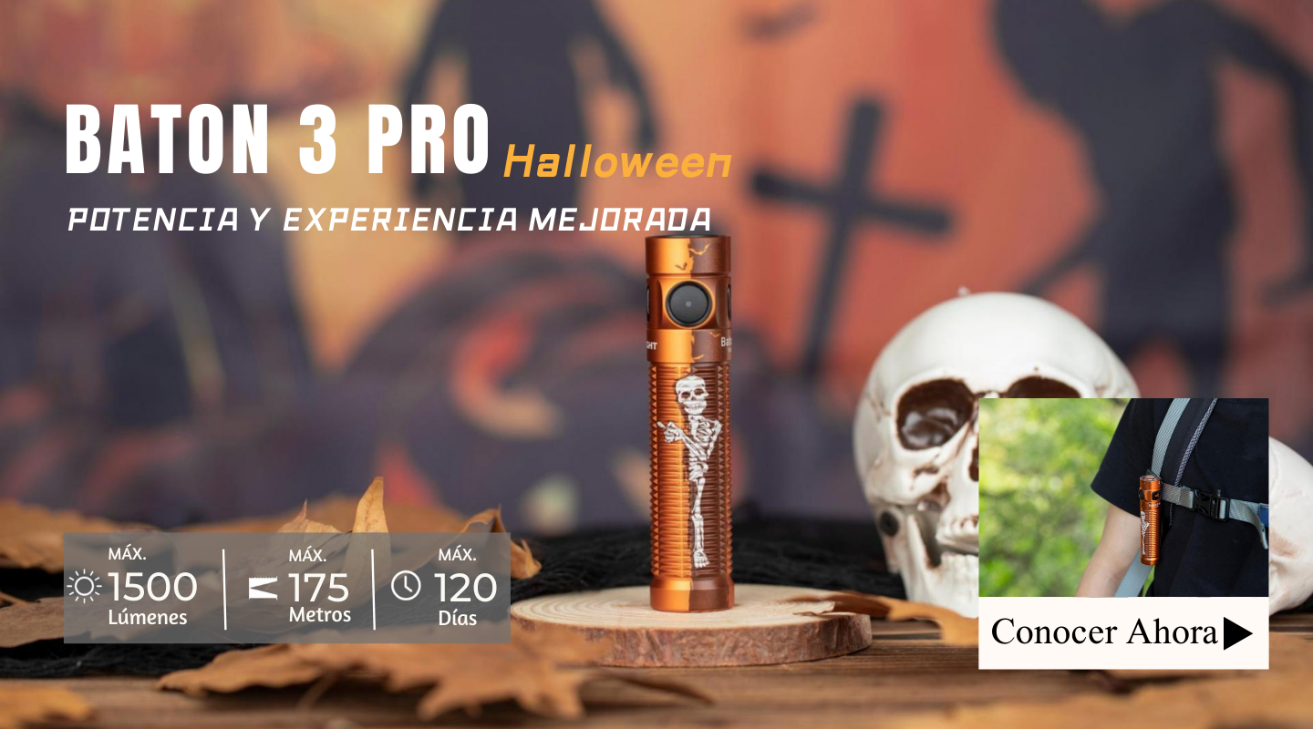 Para celebrar Halloween y el cuarto aniversario de Olight España, hemos lanzado una serie de novedades para que elijas: Arkflex Naranja Calabaza y Helloween, Warrior 3S Violeta Murciélago, Warrior Mini 3 Verde Zombi, Prowess Naranja, y Oclip con grabado láser del mapa de España, etc.