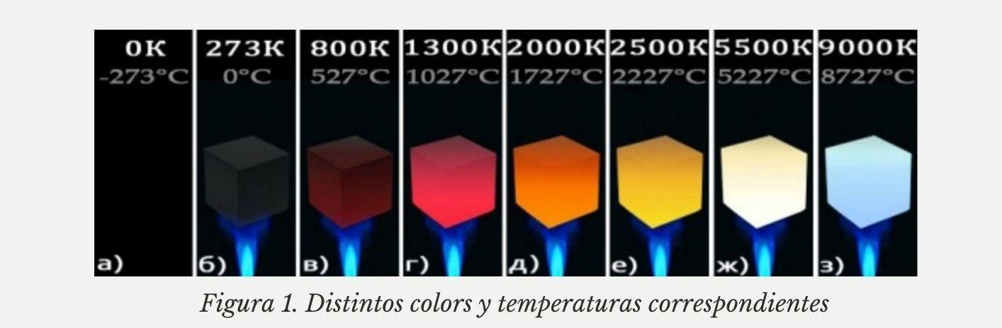 Según la Figura 1, las temperaturas del color calibradas por este método de medición son las opuestas a lo que se considera y en la vida cotidiana: el rojo, el naranja y el amarillo suelen percibirse como más cálidos, mientras que el blanco y el azul son más fríos. Pero, en realidad, el rojo tiene la temperatura de color más baja y el azul, más alta.